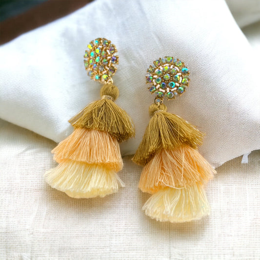 Peach Rhinestone Tassel Earrings - Peach and White, Handmade Earrings, Springtime Accessories, Coral Earrings