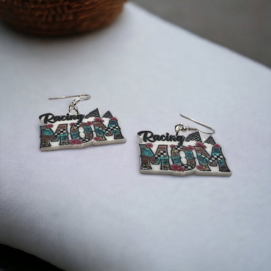 Racing Mom Earrings - Racetrack Earrings, Race Car, Drag Race, Racing Mama