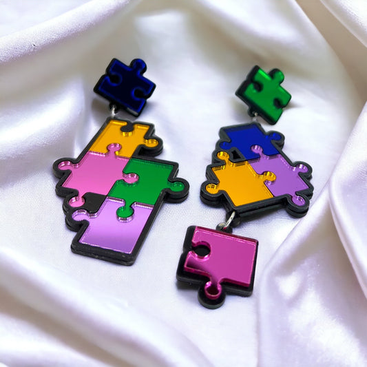 Puzzle of Style: Reflective Enigma Earrings for Awareness & Elegance!