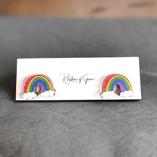 Rainbow Radiance: Handmade Wooden Studs for Every Occasion!