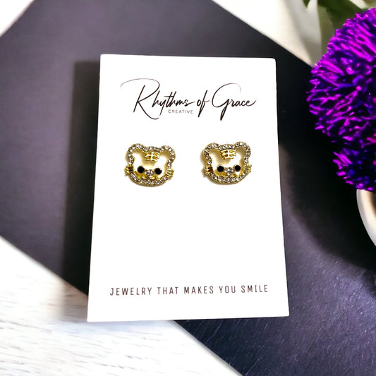 Roar in Style: Rhinestone Tiger Stud Earrings