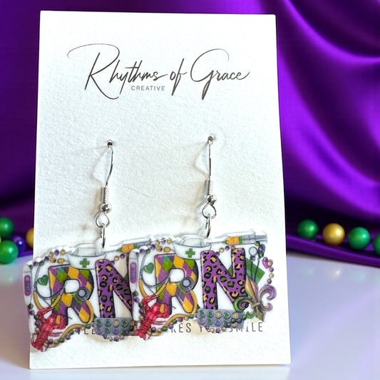 RN & Ready to Mardi! – Nurse Mardi Gras Earrings 🎉