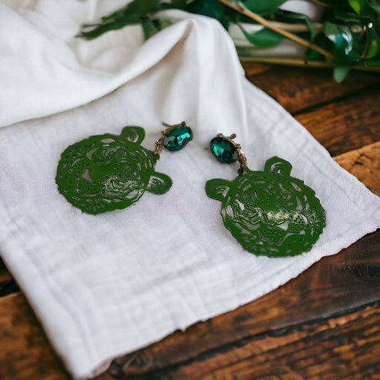Roar-some Green Tiger Earrings – Unleash Your Wild Style!"