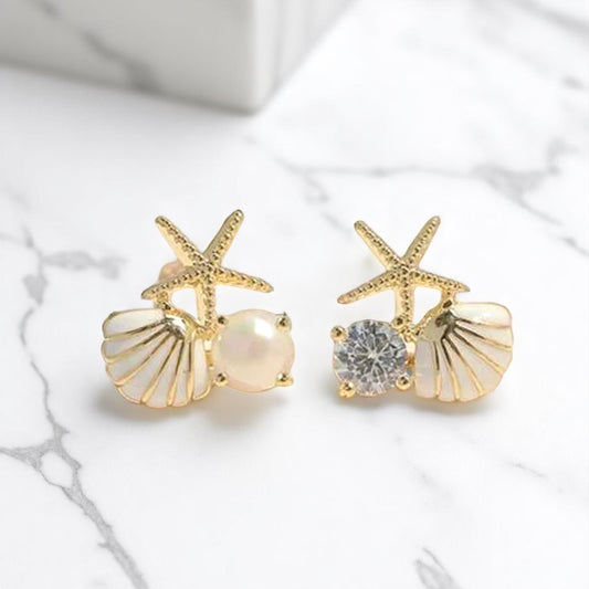 Seashell Sparkle: Pearl & Rhinestone Starfish Studs for Ocean Lovers!