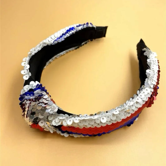 Sequined Patriotic Headband - Handmade Headpiece, Red White and Blue, Stars and Stripes, Military Mom