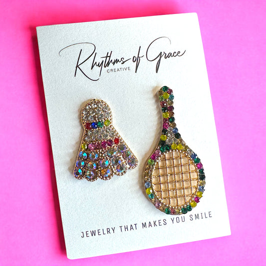 Serve Up Style: Dazzling Multicolor Rhinestone Badminton Drop Earrings!