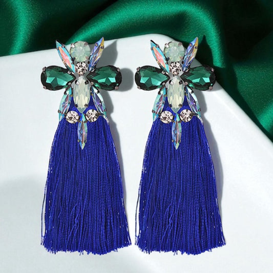 Sparkle & Shine: Stunning Rhinestone Tassel Earrings in Blue, Pink & Gold!