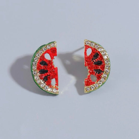 Sparkle & Slice: Rhinestone Watermelon Stud Earrings! 🍉