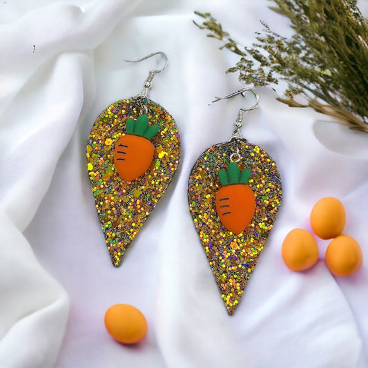 Sparkle & Shine: Whimsical Glitter Carrot Dangle Earrings!
