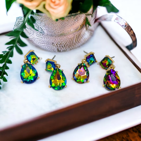 Blue Rhinestone Earrings - Mardi Gras Ball, Rhinestone Earrings, Winter Formal, Parade Outfit