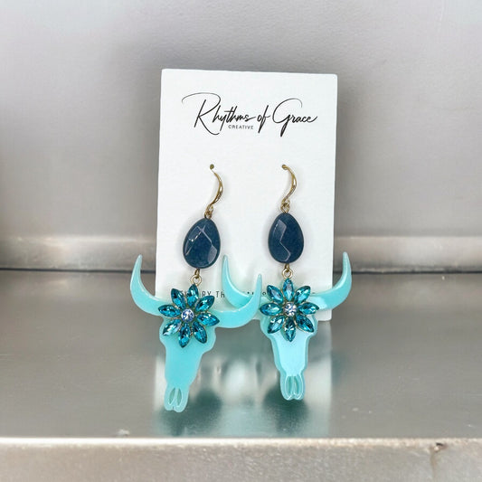 Striking Blue/Teal Longhorn Dangle Earrings - Versatile Western Style Statement Jewelry