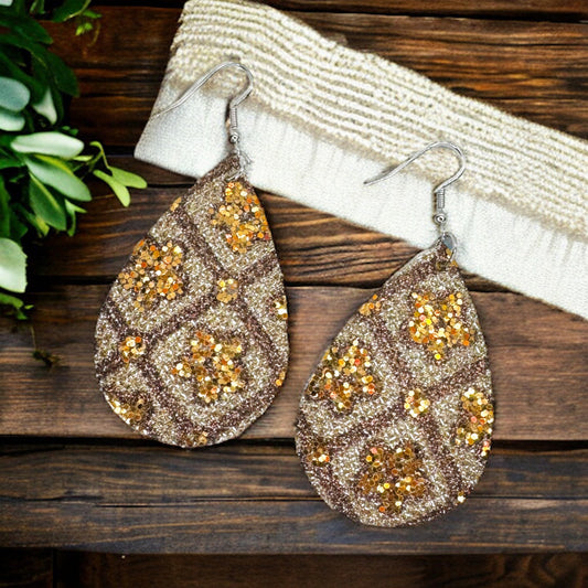 Stunning Brown Dangle Earrings - Sparkling Glitter Teardrop Design
