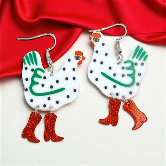 Strut Your Stuff: Chicken with Red Boots Earrings!