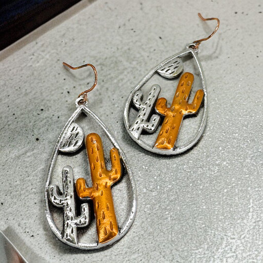 Stunning Western Dangle Earrings - Unique Cactus Design, Zinc Alloy