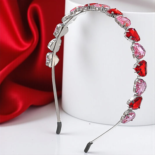 Sweeten Your Style: Pink and Red Heart Rhinestone Headband! 💖