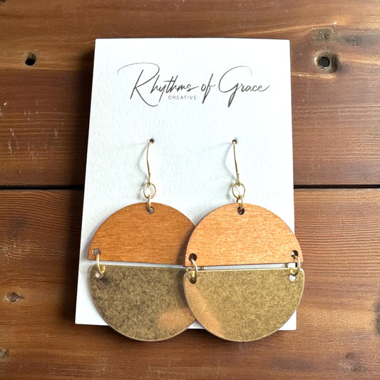 Boho Bliss: Chic Wood & Gold Dangle Earrings for Every Adventure