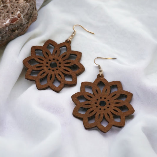 Boho Blossom: Handmade Wood Flower Dangle Earrings 🌸