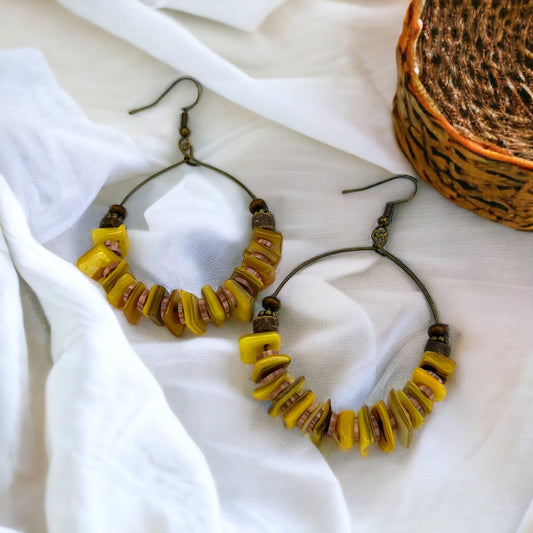 Boho Bliss: Dazzling Yellow & Brown Beaded Dangle Earrings! 🌼