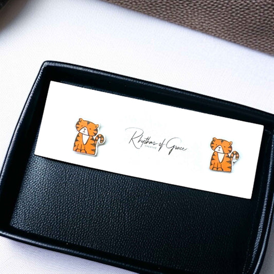 Tiger-tastic Studs: Cartoon Tiger Earrings for a Wildly Fun Look!