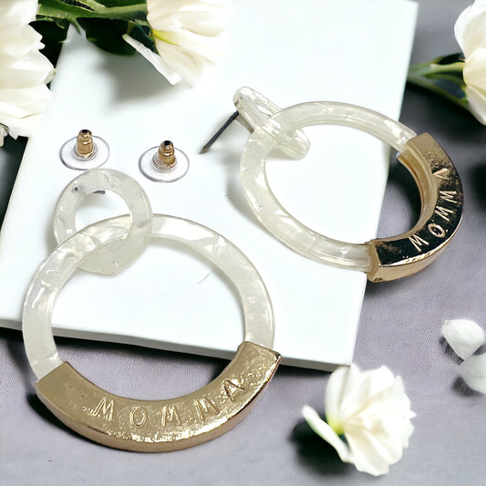 Unique Handmade Acrylic and Gold Earrings - "MAMA" Stamped - Great Gift for Mom!