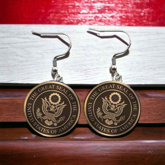 United States Earrings - Handmade America Seal Cabochon Earrings
