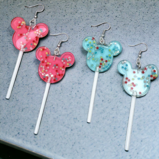 Regular price $15.00 USDRegular priceUnit price / per$18.00 USDSale price $15.00 USDWhimsy & Sweetness – Mouse Ears Lollipop Earrings in Pink or Blue!