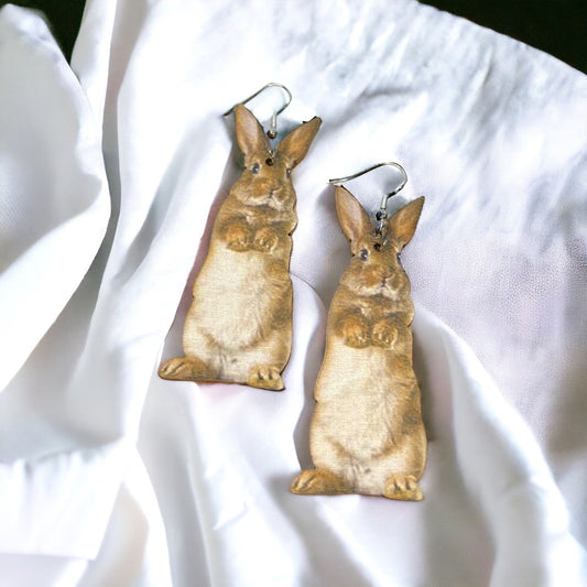 Whimsical Wooden Rabbit Earrings - Perfect for Easter Cheer!