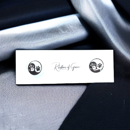 Yin Yang Harmony: Human Hand & Dog Paw Stud Earrings