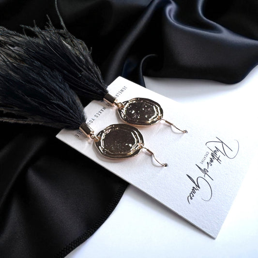 Boho Glam Vibes: Black Feather & Gold Charm Dangle Earrings – Lightweight, Bold & Beautiful!