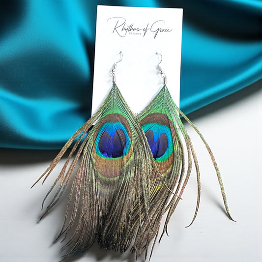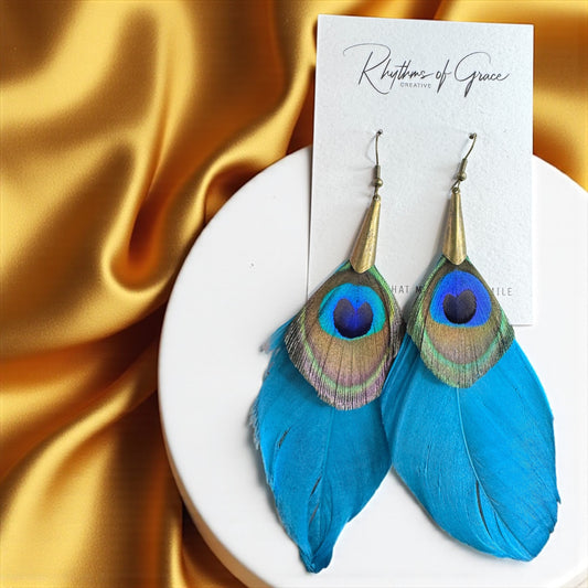 Boho Peacock Feather Dangle Earrings – Lightweight, Bold & Beautiful! 🦚