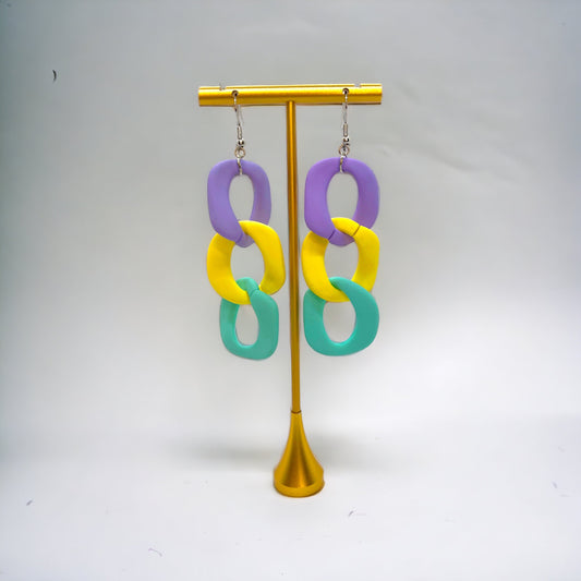 Bold & Festive Chain Earrings – Mardi Gras Vibes in Every Link!