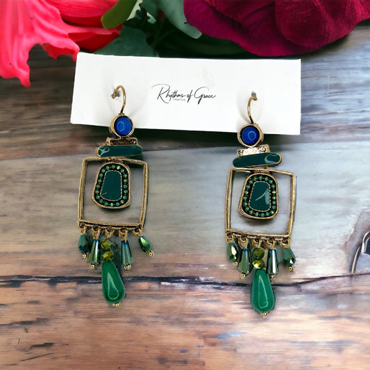 Boho Stone Earrings - Blue Green Stones, Teal and Blue, Boho Earrings