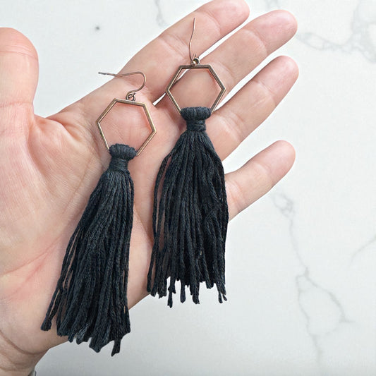 Boho Tassel Dangle Earrings – Sage Green or Black | Western Chic Jewelry