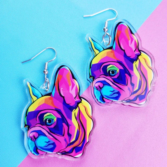 Bow-Wow Bling: Colorful Bulldog Dangle Earrings for Dog Lovers!