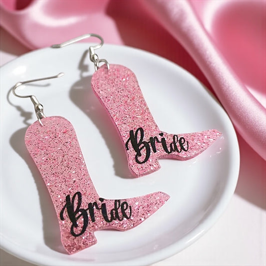 Boot Scootin' Bride Earrings: Saddle Up for Your Bachelorette Bash!