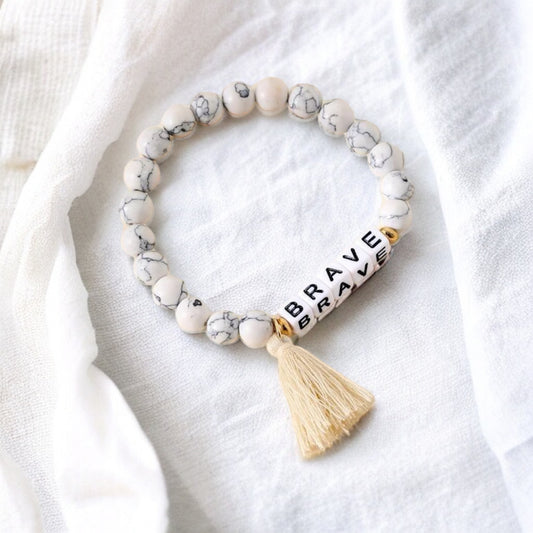 "Wear Your Brave" ā Stone Beaded Bracelet for Everyday Courage