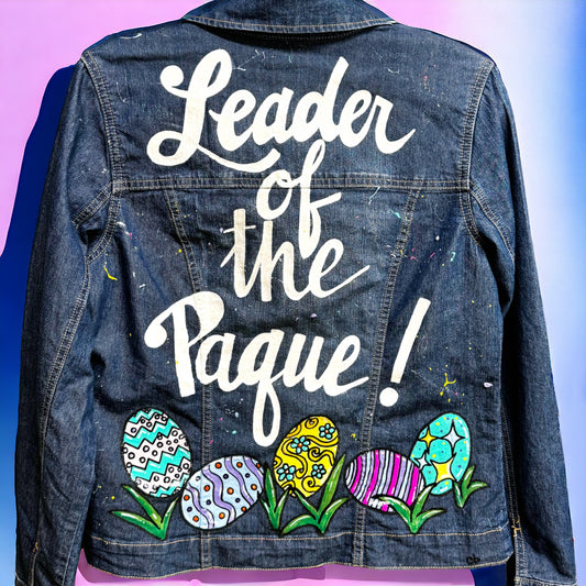 "Leader of the Paque" Hand Painted Easter Jean Jacket ā Ladies Medium, Denim