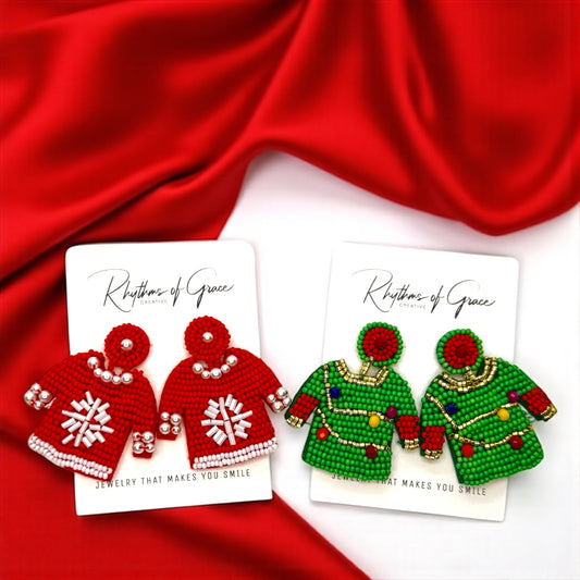 "Merry Christmas, Ya Filthy Animal!" - Beaded Christmas Sweater Earrings