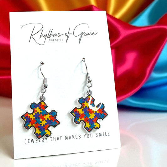 Brighten Your Look with Autism Awareness Puzzle Piece Earrings – Colorful, Meaningful & Lightweight!