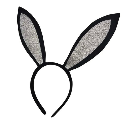Bunny Bliss: Black and Silver Bunny Ears Headband for Playful Adventures!