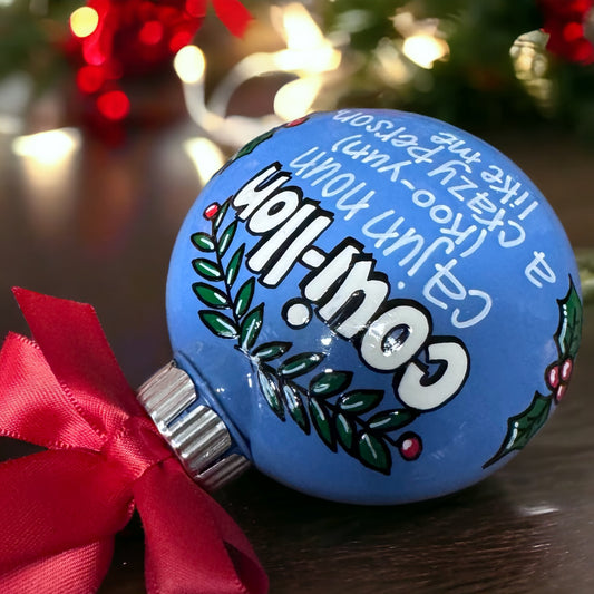 Cajun Christmas Ornament: âCouillon - Cajun Noun. A crazy person. Like me.â