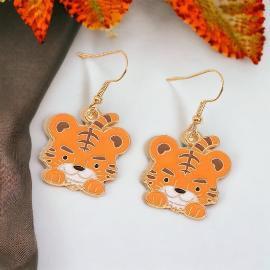 Cartoon Tiger Earrings - Louisiana Football, Tiger Jewelry, Handmade Earrings, Tigers Earring, Handmade Jewelry, Kids Tiger Accessories