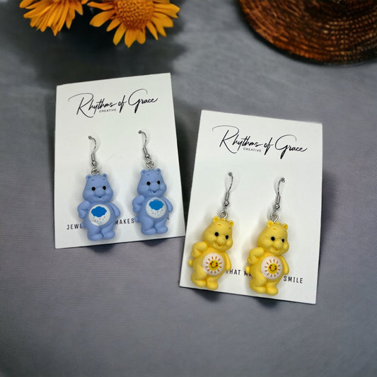 Care Bear Earrings - 80’s Retro, Care Bear Earrings, Care Bear Costume, Cartoon Character, Carebear Earrings, Handmade Earrings
