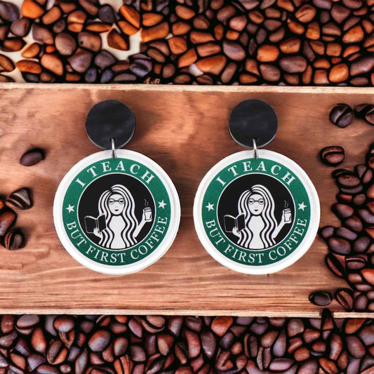 Coffee Teach Repeat Earrings – Caffeinated Style for Every Teacher! ☕