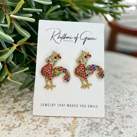 Cock-a-doodle-Dazzle Your Style with Rhinestone Rooster Earrings! 🌟