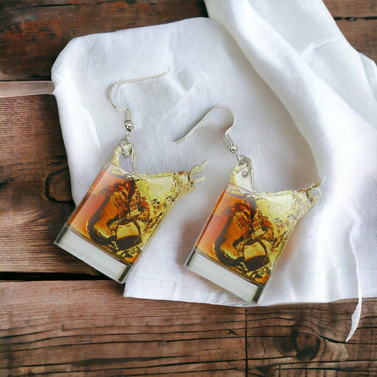 Cocktail Earrings - Rum and Coke, Handmade Earrings, Happy Hour, Handmade Earrings, Drink Earrings, Whiskey, Scotch, Bartender Earrings