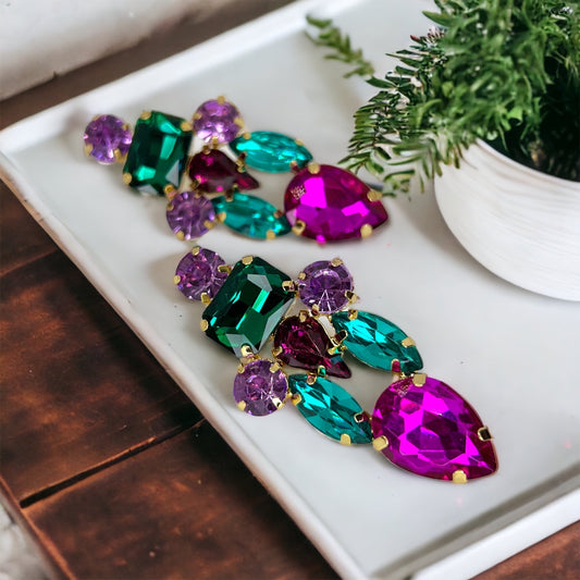 Colorful Rhinestone Earrings - Mardi Gras Ball, Rhinestone Earrings, Hot Pink, Parade Outfit