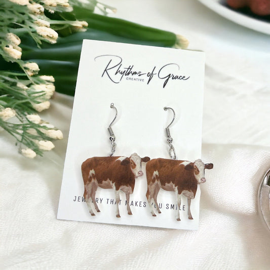 Cow Earrings - Cow Jewelry, Handmade Earrings, Handmade Jewelry, Animal Earring, Animal Jewelry, Cow Accessories, Cow Print, Moo Cow, Dairy