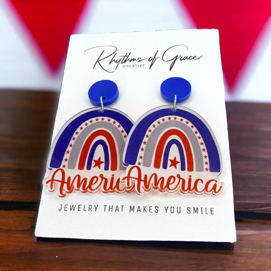 America Earrings - Fourth of July, Patriotic Earrings, Red White and Blue
