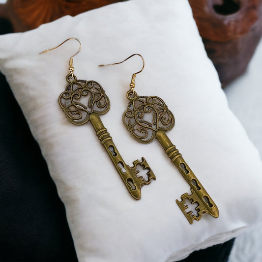 Antique Key Earrings - Lock Earrings, Handmade Earrings, Key Earrings, Motivational Gift